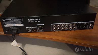 PreSonus StudioLive 24R è un mixer digitale 2U e un'unità di palco dotata di 24 preamplificatori microfonici/lineari XMAX (combo XLR/TRS), 12 uscite FlexMix e un'interfaccia USB 40x40. Funziona come un mixer a 32 canali (24 locali, 8 digitali) con elaborazione Fat Channel e 4 bus FX interni. Le caratteristiche principali includono audio a 48 kHz/24 bit, 115.