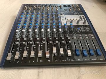 Mixer in ottime condizioni, come nuovo.Vendo per trasferimento Caratteristiche: Interfaccia di registrazione audio USB 2.0 (tramite connessione USB-C™) 14x4 a 24 bit/96 kHz; registra ogni canale più il mix principale Registratore SD 2x2 (registra il mix principale); supporta i formati SD e SDHC fino a 32 GB Mixer analogico a 14 canali con: 8 ingressi microfonici bilanciati con preamplificatori microfonici XMAX più due ingressi strumento, 12 ingressi di linea bilanciati e 2 punti di insert Super Channel stereo (Canale 13/14) con Bluetooth®0 wireless, ingressi RCA, ingresso stereo da 1/8 di pollice e riproduzione stereo SD/USB commutabile Processore di effetti stereo con 16 preset, send e return dedicati e jack per footswitch bypass Soluzione di registrazione completa: include Capture™ software di registrazione live e licenza perpetua Studio One® Pro per Mac® e Windows
