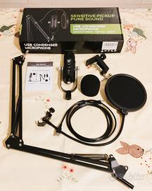 Microfono USB Cardioide Pro Effetti DSP + Braccio