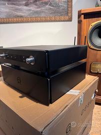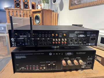vendiamo come da titolo splendida abbinata preamplificatore con STREAMER E DAC e finale di potenza stereo marca PRIMARE modello PRE 35 PRISMA e A35.2, prodotto demo nostro negozio pari al nuovo garanzia 2 anni LISTINO 8100,00 euro RICHIESTA 5690,00 euro visibili presso il nostro punto vendita di via capitano alessio 110 36027 rosà (Vi) cell negozio 042485330 digitex audiovideo www.audiostoreservice.it Primare | PRE35 Prisma Preamplificatori Stereo Serie 35 Preamplificatore stereo. Componentistica superselezionata. 2 Ingressi bilanciati XLR, 3 ingressi RCA. 2 uscite bilanciate XLR. 2 uscite RCA (lina fissa e pre-out variabile). Presa RS-232. Trigger 12V e IN/OUT IR 3,5mm. Stadio di alimentazione completamente isolato dai circuiti audio. Display grafico OLED per indicazione di sorgente, volume e info. Basso consumo in stand-by 0,5W. Telecomando C25. Scheda digitale PRISMA (SM35) a bordo. Funzioni e ingressi aggiuntivi: streaming di rete, Ethernet e Wi-Fi dual band 2,4/5GHz, multi-room, Bluetooth, AirPlay, App proprietaria, Chromecast integrato, Spotify Connect tramite App. UPnP/DLNA. Ingresso USB-A per PCM fino a 24bit/192KHz e DSD 128/5,6MHz. Dimensioni: (LxAxP) 43x10,6x42cm. Primare | A35.2 Amplificatori Finali Stereo Serie 35 Finale di potenza stereo. 200W x 2 canali su 8ohm, 800W x 1 a ponte in mono su 8ohm. Stadio d'uscita ad alta corrente a tecnologia digitale UFPD 2. Ingressi sia RCA che XLR. RS-232. Trigger 12V. Dimensioni: (LxAxP) 43x14,5x44cm.
