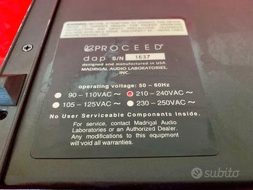 Vendo dac/convertitore Proceed DAP in ottime condizioni per l’eta’ della macchina , oltre 30 anni . Questo convertitore è stato realizzato dai laboratori della Madrigal Audio, la stessa casa che produceva Mark Levinson . A corredo manuale originale e cavo power schuko . Confezione neutra per la spedizione. Perfetto con Krell, McIntosh, VTL, WADIA , Audio Research , Mark Levinson, Spectral, Musical Fidelity, Denon, Marantz, B&W , Tannoy, Sonus Faber, Nordost ,Naim , Linn , Jeff Rowland , Mbl , Burmester , Quad .