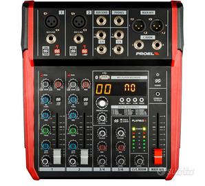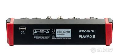 PROEL Proel PLAYMIX6 - Mixer audio a 6 ingressi con modulo bluetooth, lettore MP3 e Registrazione stereo su USB, Nero rifiniture in Rosso