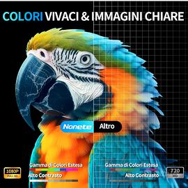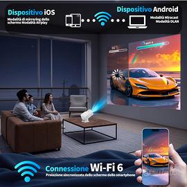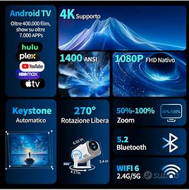 Proiettore portatile con supporto rotativo a 270° e correzione Keystone automatica. Ideale per collegare TV Stick, USB, HDMI e PC.