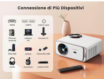 Netflix/Android TV Integrato】Proiettore 4K Supporta, 22000 Lumen 1080P Full HD, WiMiUS Videoproiettore WiFi Bluetooth, E-Focus/Auto Keystone per Home Cinema [Fornito con Treppiede] Telecomando Ulteriore informazioneAltoparlante integrato, Correzione trapezoidale digitale Tecnologia connettivitàHDMI Risoluzione nativa del monitor1920 x 1080 Risoluzione massima del monitor1920 x 1080 Tipo di schermoDLP Fattore di formaPortatile Tipo di staffa VESA.Montaggio su treppiede Luminosità22000 lumen Colorestandard Potenza in watt220 watt Tipo di unità di controlloTelecomando Dispositivi compatibiliDispositivi con HDMI o USB outputs Rapporto di contrasto.20000:1 Distanza di proiezione massima6 Metri Interfaccia hardware3.5mm Audio, HDMI, USB 2.0 Metodo di controlloRemoto Distanza minima di proiezione1,5 Metri Correzione trapezoidale verticale30 Centimetri Encoding videoHEVC Main 10 Nuovo mai usato con scatola originale! Contenuto della scatola Cavo di alimentazione Cavo HDMI Manuale d'uso Telecomando