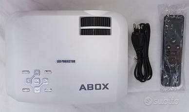 Proiettore in ottime condizioni e funzionante, si trova all'interno del suo pacco originale. Presenta: - proiettore: T22 PROJECTOR - cavo di alimentazione per proiettore - telecomando Caratteristiche: - Brand: ABOX - Tipo: proiettore Led - risoluzione nativa: 800*480 - rapporti d'aspetto: 4:3 / 16: 9 - distanza di proiezione: 1-3.6 m - grandezza dell'immagine: 33-120 inches - correzione trapezoidale (keystone): +-15° (manual) - audio: due piccoli altoparlanti integrati da 2 Watt ciascuno.