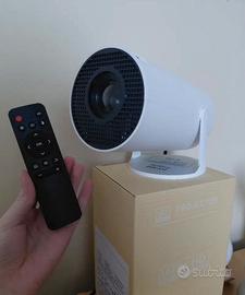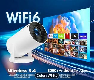 Proiettore portatile, mini proiettore, risoluzione nativa 1920*1080P, supporta Wi-Fi 6 e 4K, dotato di sistema Android 11, dotato di tecnologia wireless BT5.4 per ottenere una trasmissione dati ad alta velocità, angolo di proiezione regolabile di 180°