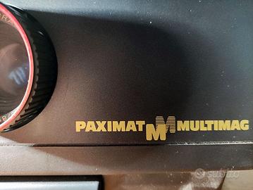 Vendo proiettore BRAUN Paximat Multimag 5015 AF-S, usato, per inutilizzo, compatibile con 6 tipi di caricatore per diapositive, autofocus IR selettivo, IPS, obiettivo Super-Paxon Multi-Coated 1:2,8/85 mm, lampada alogena 24 V 150 W, telecomando, Dialift per visione singola, minischermo per visione preliminare. Spese spedizione incluse