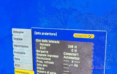 Proiettore Epson EB-W39 perfetto come nuovo. 3500 lumen Usato solo 248 ore su un totale di 6000 di durata della lampada. Doppio ingresso VGA e HDMI. Completo di cavo di alimentazione, telecomando, cavo VGA e cavo USB-type2.