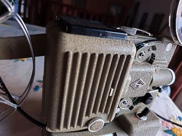 Proiettore vintage per film amatoriali 8mm dei primi anni '60. Fabbricato da Eumig di Vienna. Costruzione in metallo pressofuso, tuttora solidissimo e con tutti i componenti originali e funzionanti (tipo la molla di trascinamento della bobina di raccolta, la griglia di sfogo dell'aria di raffreddamento, la maniglia di trasporto ecc.). Dotato di lampada, cavo di alimentazione e valigetta rigida di trasporto. Per veri amatori! ***Disponibile anche la corrispondente cinepresa Eumig C3 meccanica.***