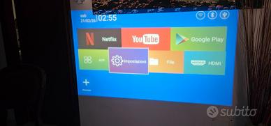 e' un proiettore che si collega alla linea internet di casa e si puo vedere prime video , netflix you tube e tutto quello che si puo vedere al computer, si puo collegare anche una chiavetta usb per vedere foto, film o ascoltare musica. e' corredata di un telecomando.tel.3394584813