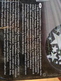 Vendo proiettore laser usato poco con confezione originale perfettamente funzionante con 12 soggetti da proiettare.Francesco