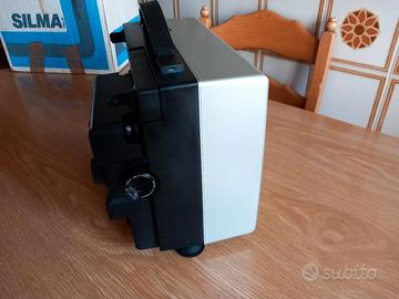 Proiettore Silma modello S122XF per pellicole 8 e Super8. Accessoriato con scatola, libretto istruzioni, 2 bobine vuote e kit per aggiuntare pellicole.