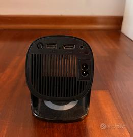 Proiettore portatile Agima smart. Compreso di: - Scatola - Cavo di alimentazione - Telecomando Qualità video 1080p e 4K. Presa HDMI, porta USB e Jack per le cuffie. Con Apps e Android TV OS Auto Keystone WiFi 6 Bluetooth 5.2. Correzione trapezoidale automatica, proietta immagini rettangolari indipendentemente dalla configurazione, con dimensioni di proiezione da 39'' a 200''