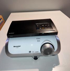 Proiettore semiprofessionale SHARP + lettore CD-DVD Sony + portaproiettore +telo grandi dimensioni ,usati pochissimo.