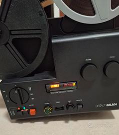 Silma Delta 7 funzionante ed in buone condizioni estetiche. Compresi cavo di alimentazione, bobina vuota da 120 metri e 2 cartoni animati sonori. Lampada a doppia luminosità, riavvolgimento con pellicola inserita, controllo di tono, contatore, doppia traccia audio...