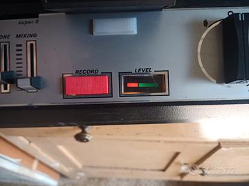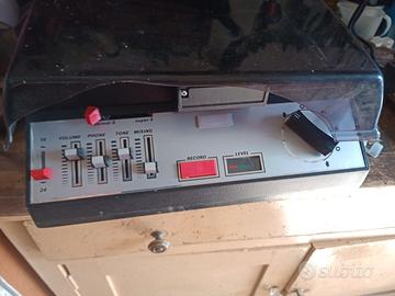 Danneggiato,per pezzi di ricambio,il coperchio e' privo di un pezzo,come da foto,si accende,si regola il suono ma non gira nulla