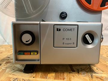 Vendo splendido proiettore cinematografico vintage Comet modello P 103, un vero gioiello del design anni '70. Questo modello è "bi-formato", ovvero in grado di proiettare sia pellicole 8mm che Super 8. Il proiettore si accende e il motore gira correttamente. Compreso di due pellicole.