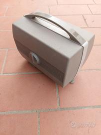 Proiettore Silma 125 Super 8. Sprovvisto di cavo di alimentazione, non posso quindi garantire il funzionamento. Per pellicole 8 mm. Modello a valigetta, credo sia provvisto anche di zoom regolabile.