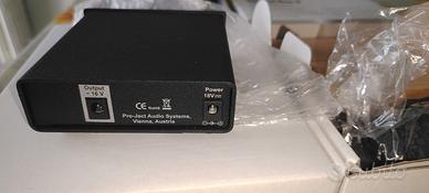 Vendita come nuovo con imballaggio originale, perfettamente funzionante ,alimentatore onda stabilizzata sinusoidale perfetta, per alimentare giradischi project vari modelli e alimentazione per giradischi THORENS ,modelli con alimentatore esterno a 16 volt AC perfettamente compatibile , lo.usavo su 166 versione a 16 volt , con tasto per la velocità 45 giri senza effettuare cambio su giradischi.