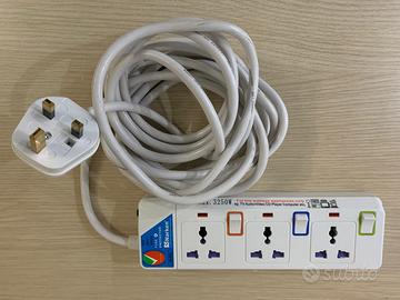 Numero 3 prolunghe elettriche "a ciabatta" multipresa inglesi come da dettagli evidenziati dalle foto. Tutte con singoli interruttori ed in ottimo stato.