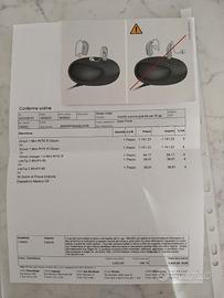 Protesi acustiche Zircon 1 Mini RITE R Oticon acquistate il 18/05/2023, come da fattura allegata. Ancora in garanzia fino a giugno 2025, come da certificato allegato. Ricaricabili. Complete di tutti gli accessori: caricatore, dato che l'apparecchio non necessita di batterie, custodia con kit per la pulizia e due confezioni nuove di filtrini. Per l'utilizzo basta recarsi presso un centro Zelgero Oticon dove faranno esame udito e personalizzeranno gli apparecchi a mezzo PC.