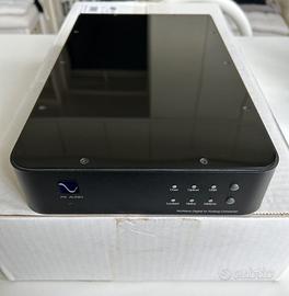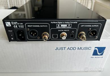 Prodotto pari al nuovo in perfetto stato di conservazione, senza alcun graffio, venduto nel suo imballo originale. Il convertitore digitale analogico PS Audio NuWave rappresenta l’evoluzione della celebre serie Digital Link III, progettato per offrire prestazioni audio di riferimento a un prezzo accessibile. Questo DAC hi-res 32bit 192kHz integra il rinomato chip Burr-Brown PCM1798 in una soluzione completamente riprogettata che elimina il rumore e ottimizza la conversione digitale-analogica. Il NuWave si distingue per la sua capacità di gestire formati audio ad alta risoluzione fino a 192kHz/24bit attraverso tutti gli ingressi digitali disponibili: USB asincrono, coassiale e ottico Toslink. La sezione di alimentazione è stata completamente ridisegnata con un generoso trasformatore toroidale e condensatori elettrolitici da 12.000 microfarad, garantendo stabilità e dinamica eccezionale. Il design compatto ma robusto ospita componenti di qualità audiophile, incluso il sistema di oversampling digitale a 8x e filtri avanzati per una riproduzione musicale cristallina. Perfetto per collegare sorgenti digitali come lettori CD, computer e streamer musicali a sistemi hi-fi di alta gamma. Specifiche Tecniche Chip DAC: Burr-Brown PCM1798 (32bit) Frequenze supportate: 44.1kHz, 48kHz, 88.2kHz, 96kHz, 176.4kHz, 192kHz Risoluzione massima: 32bit/192kHz (tutti gli ingressi) Ingressi digitali: USB (asincrono), coassiale RCA, ottico Toslink Uscite analogiche: RCA bilanciate, XLR bilanciate Oversampling: 8x digitale con filtri avanzati Risposta in frequenza: 20Hz-20kHz (±0.1dB) Rapporto S/N: >115dB Distorsione armonica totale: <0.005% Dimensioni (LxPxA): 21,4 x 5,65 x 35,3 cm Peso: 5,4 kg Alimentazione: Trasformatore toroidale dedicato