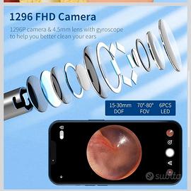 Otoscopio, 1920P, Pulizia Orecchie con 6 Luci LED, 3,5mm Pulitore Orecchie