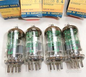 Quartetto accoppiato di tubi ECC88 serie Philips per il mercato francese "Miniwatt Dario". Le valvole sono nuove con la massima erogazione... Possono sostituire 6DJ8 PCC88 E88CC