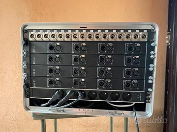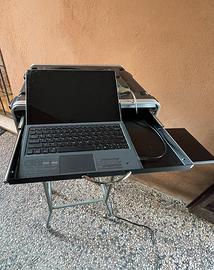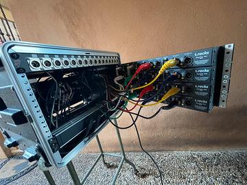 Il tutto allestito in rack Gator con ruote cablato con cassetto estraibile con basetta per il mouse per il pc di controllo.