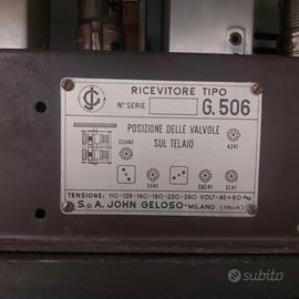 Radio a valvole Geloso, mod.G506, frequenze M, 50M, 31M, 19M, 40M, 25M, 16M. La radio è Funzionante ma si sentono solo di notte alcune stazioni estere. Mobile perfetto, molto bello. Da esposizione.