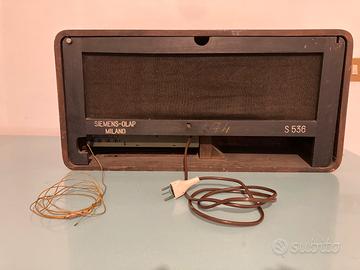 Vendo radio a valvole Siemens modello S536, funzionante e riceve varie stazioni. Mobile con qualche segno ma nel complesso in buone condizioni considerando gli anni che ha.
