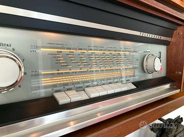 Sintoamplificatore a valvole Telefunken, il top della tecnologia tedesca nei primi anni '60 per la ricezione di stazioni radio FM ed in grado di ricevere segnali da un registratore o altra sorgente analogica. Possibile la trasformazione in apparecchio WiFi (necessita solo di receiver WiFi). Dimensioni 650 x 255 x 270 mm peso 12 Kg.