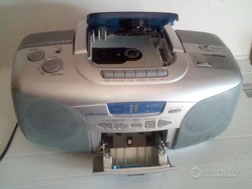 Buongiorno a tutti , cedo questo radioregistratore con cd della famosa marca AIWA , perfettamente funzionante , sia il CD che le cassette , con un audio eccezionale , volendo queste radio si possono modificare , aggiungendo un modulo mp3 sd card usb , ed aggiornarli agli ultimi tempi , modifiche non invasive , la radio in questione presenta qualche piccolo segno di usura , e una piccola ammaccatura alla rete altoparlante destro , in basso , come vedesi nelle foto , lo svendo solo per inutilizzo