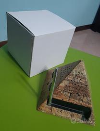 Radio AM/FM a forma di piramide egizia, funzionante con pile. Nuova, mai usata, nella sua confezione originale con foglio illustrativo per le istruzioni.