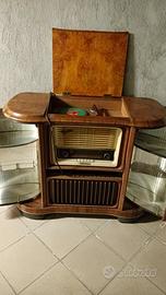 radio "Telefunken" anni 60 con giradischi 33/45 giri, porte laterali con inserti a specchio porta bicchieri/bottiglie . non funzionante da restaurare