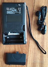 Radio Bench FM/AM a due bande portatile, tascabile, alimentata a batterie, analogica con antenna, con auricolari per ascoltarla ovunque, vintage. Colore nero, nuova, mai utilizzata, in confezione originale, lunga 2,5 cm, larga 6,5 cm e alta 11 cm (antenna inclusa).