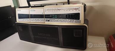 Bellissima radio boombox Philips Moving Sound in rara colorazione bianca, deck due funziona, deck uno da sostituire cinghie. Possibile spedizione.