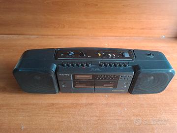 Radio boombox stereo a cassette Sony CFS-W310L vintage funzionante in parte da riparare/sostituire le cinghie che servono per fare girare le cassette cosa molto comune in questi dispositivi come anche i walkman Detto questo quindi cedo come pezzi di ricambio/da riparare/non funzionante in parte La radio funziona perfettamente non ha segni di usura ed esteticamente si presenta molto bene