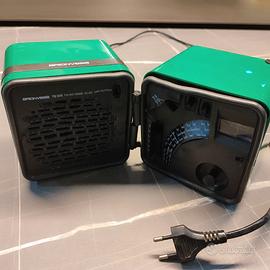 "Radio Brionvega Cubo TS 5050 sia a batteria che con cavo. Segni del tempo, imperfezioni e rottura plastica.
