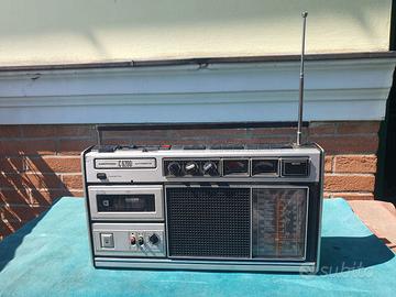 Radio con registratore a cassette anni 70 , Grundig modello C 6200 . La radio si accende, ma va sistemata la ruota della sintonia , non trova le frequenze, riesco a sentire una stazione gia' in memoria. Il registratore funziona, anche i vari tasti , ma si "mangia" le cassette. L'antenna e' completa ma e' staccata dalla base. Manca il perno centrale alla rotella della sintonia ( vedi ultima foto) , che comunque gira bene. Misura cm. 43x23x11 , radio piuttosto rara vendo per collezionismo. Anche ritiro a mano in zona Modena .