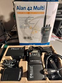 Vendo radio CB portatile Alan 42 Multi, perfettamente funzionante e in ottime condizioni, completa di tutta la dotazione originale e accessori aggiuntivi. Dotazione standard inclusa: * Radio CB Alan 42 Multi * Antenna standard * Pacco per batterie ricaricabili * Portabatterie per pile AA * Caricabatterie da muro * Adattatore accendisigari 12V * Clip da cintura * Laccetto da polso Accessori aggiuntivi inclusi: * 8 batterie ricaricabili NiMH 2500 mAh Duracell * Antenna opzionale Albrecht Hyflex CL 27 da 54 cm (migliore portata e flessibilità) Radio versatile, utilizzabile sia in portatile che in auto grazie agli adattatori inclusi. Ideale per: corse ciclistiche e manifestazioni sportive Pronta all’uso, nessun lavoro da fare. Consegna a mano in zona Magenta (MI) o Busto Arsizio (VA) eventuale spedizione disponibile. per ricerca: #anytone, #yaesu, #icom, #Kenwood, #quansheng, #dmr, #retevis, #hytera, #tyt
