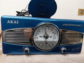 VENDO RADIO CON LETTORE COMPACT DISC DIGITAL AUDIO MP3 BLU METALIZZATO MARCA AKAI CLASSIC "i-Vintage"MOLTO BELLA SENZA DIFETTI, FUNZIONANTE . MISURE H.14CM.LARGHEZZA31 CM.,PROFONDITÀ 30.VISIBILE A MODENA