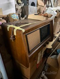 Splendida radio d'epoca a valvole, prodotta in Italia dalla CGE negli anni '50. Un pezzo di storia del design italiano, perfetto per collezionisti o per chi desidera arredare un ambiente con un tocco vintage originale. Dettagli: • Marca: CGE (Compagnia Generale di Elettricità) • Modello: 860 • Anno di produzione: Fine anni '50 • Materiale mobile: Legno impiallacciato lucido, in ottime condizioni estetiche. • Scala parlante: Intatta, con le scritte originali in italiano ben leggibili (es. Torino I, Napoli II, Milano I). • Manopole: Tre manopole originali, perfettamente funzionanti. • Griglia: In tessuto traforato originale, in buone condizioni. • Cavo di alimentazione: Cavo originale intrecciato con spina d'epoca. • Condizioni estetiche: Molto buone, come da foto. • Condizioni funzionali: La radio è stata conservata con cura, ma non è stata accesa di recente. Si presume che le valvole siano ancora originali, ma per motivi di sicurezza si consiglia di farla visionare da un esperto prima dell'uso