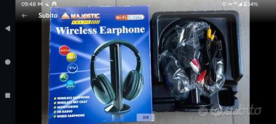 Radio cuffia Majestic senza fili NUOVA. cuffie senza fili, monitoraggio baby control, radio FM, cuffia a filo.