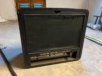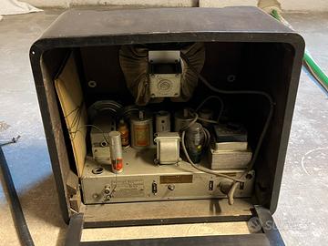 Splendida radio a valvole prodotta a Milano anni 40-50. Mobile in legno integro, scala parlante ben leggibile e completa di tutte le manopole originali. L'interno appare completo e originale. Oggetto venduto come pezzo da collezione o complemento d'arredo, non testato elettricamente per preservare l'integrità dei circuiti originali. Un pezzo di storia del design italiano.
