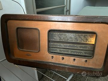 Radio d’epoca originale in condizioni discrete, con diversi segni di usura dovuti al tempo visibili sull’estetica.
