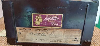 Radio RCA Victor Bakelite marrone modello 8X541 d'epoca,vintage anno 1940. Alimentazione 110 Volt con spina di tipo americano + spina italiana. Range 540-1600 Kilocycles / Watts 30 / U 723311. Condizioni buone si accende come da foto.