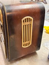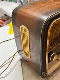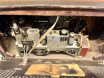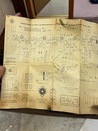 Funzionante e completa di tutto (schema tecnico compreso) Da pulire ma in ottimo stato anche la parte in legno. Si tratra di una radio costruita in germania tra il 1959-60 (all’interno abbiamo trovato pure un permesso relativo all’uso della radio in casa emesso dal Reich, visto la data, probabilmete relativo ad un altro apparecchio) Solo a mano a Treviso.