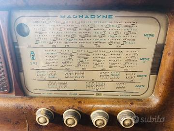 Radio d’epoca “Magnadynes95” Radio a valvole d’epoca funzionante con tutti i suoi componenti originali. (Condizioni come da foto dato il tempo).