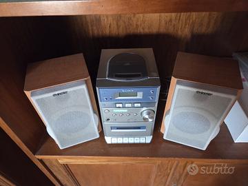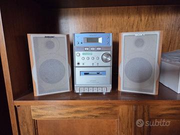 dispongo di uno stereo da casa con due casse tutto della sony in buono stato con lettore CD musicassette e frequenza radio di ascolto funzionante nessun difetto da segnalare